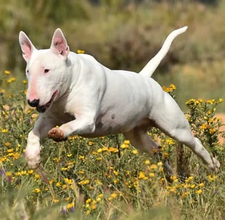 The Bullterrier has a unique temperament that combines many qualities. This breed of dog is energetic, playful and extremely loyal to its family members. His activity level is high, so he needs exercise and mental challenges on a daily basis. Walks, games and training ensure that the Bull Terrier stays fresh and in shape. This breed of dog is particularly fond of various sports, such as agility and flyball, which offer them a variety of movements.